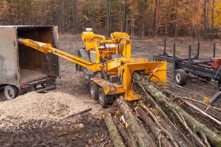 The Trelan 686 is a mid-sized disc-style chipper featuring a Caterpillar C18, 800 or C27, 875 horsepower Tier 4 Final engine. Three or four knife disc options are available, with chip sizes ranging from ¾”, 7/8”, or 1”. A 68” diameter x 6” thick chipper disc is standard, along with a wireless radio remote control and a choice of curved or straight discharge.